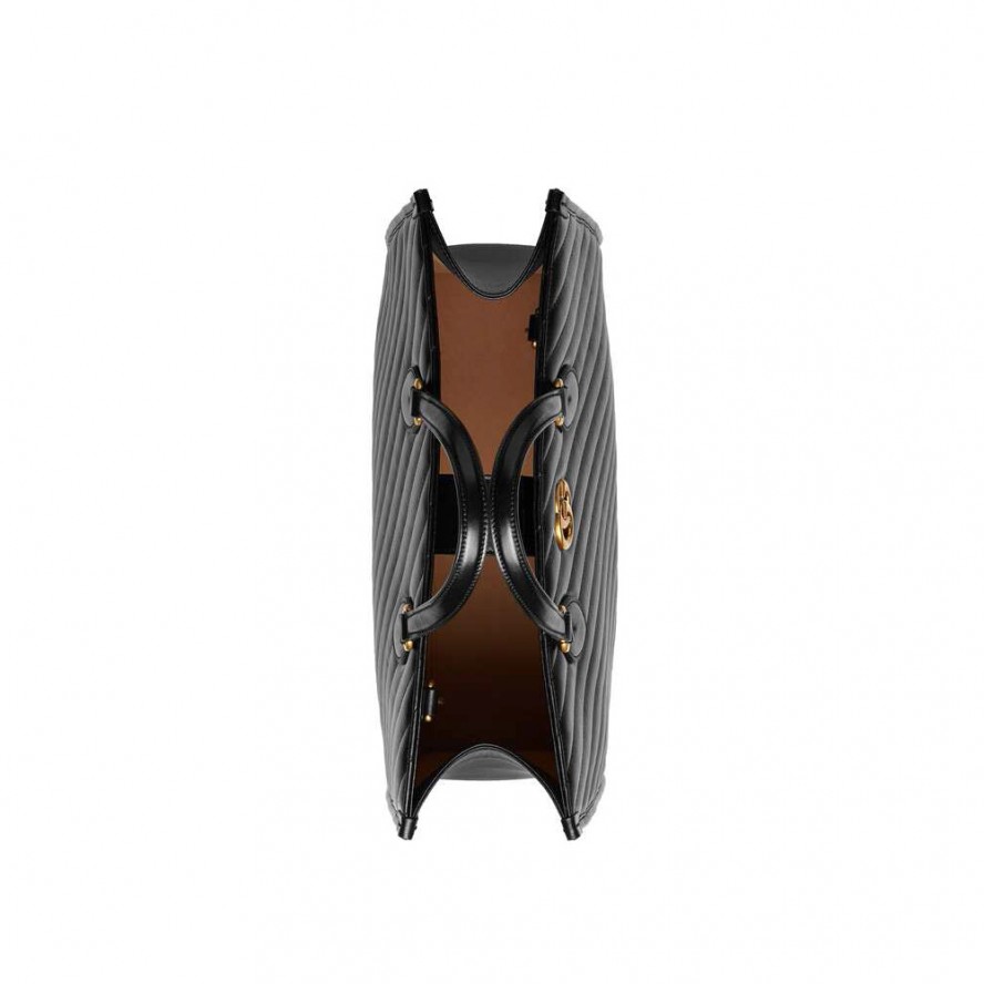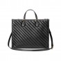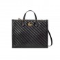 トップハンドル トートバッグにショルダーストラップを付けた〔GGマーモント〕の新作。ブラックのキルティングレザーに、ラインを象徴するダブルGのハードウェアが際立ちます。 |