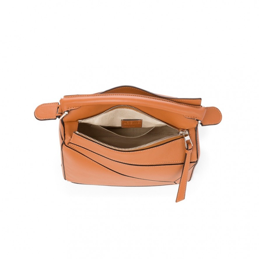 パズルバッグは、クリエイティブディレクターのジョナサン・アンダーソンがロエベで初めてデザインしたバッグです。 パズルバッグの独創的なデザインは、精確なカッティング技術が作り出す幾何学的なラインと四方体のフォルムから成り立ちます。ショルダーからクラッチまで5通りの方法で着用でき、完全に平らに折りたたむことも可能