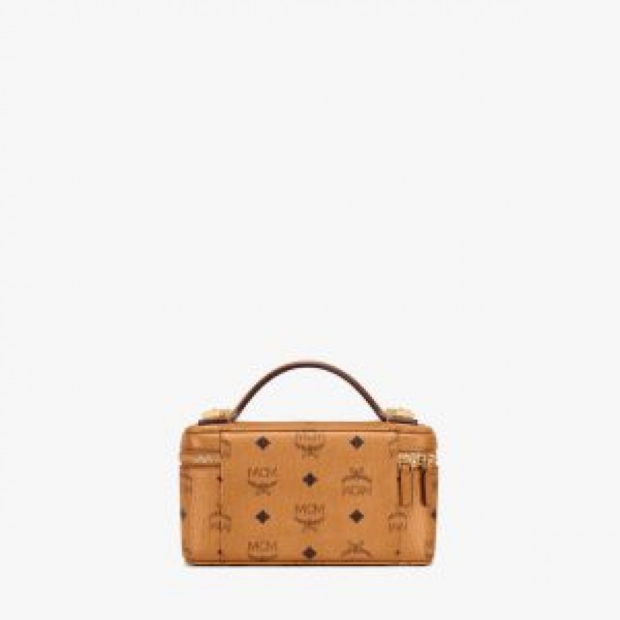 【完売間近】化粧ポーチとして旅先でも活躍するシックなヴァニティバッグは、取り外し可能なクロスボディストラップ付き。MCMのモノグラム入りヴィセトス・コーテッドキャンバスを用いたシックなヴァニティケース。ハンドルと取り外し可能なストラップには、しなやかなナッパレザーを使用しました。手に持っても、肩からかけてクロスボディスタイルでもお楽しみいただけるこのバッグは、内ポケットを備えた機能的かつ軽量なデザインが特徴で、旅行にも便利です。 |
