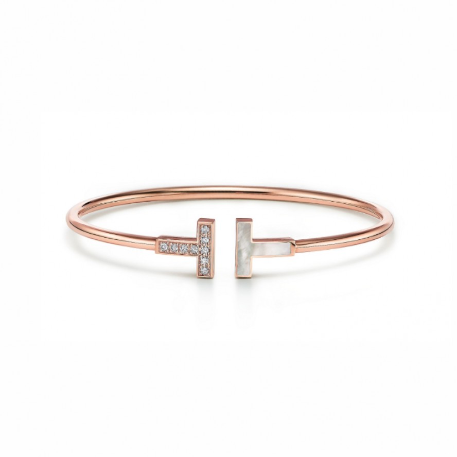 ★1126新品★Tiffany ティファニー ワイヤー ブレスレット ローズゴールドにダイヤモンドとマザーオブパール GRP11104