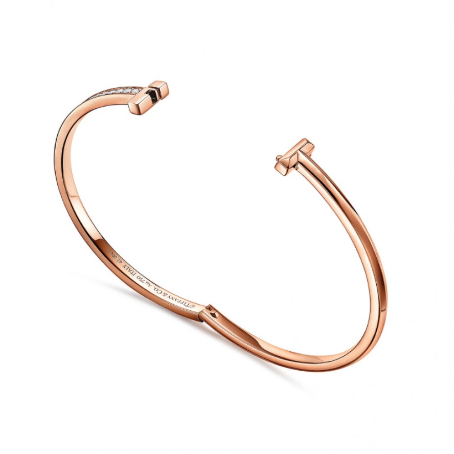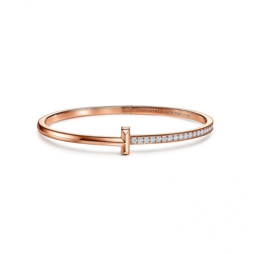 ★1129新品★Tiffany ティファニー T T ワン ヒンジ バングル ローズゴールドにダイヤモンド GRP11300