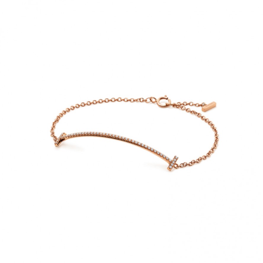 ★1129新品★Tiffany ティファニー T スマイル ブレスレット ローズゴールドにダイヤモンド GRP09052