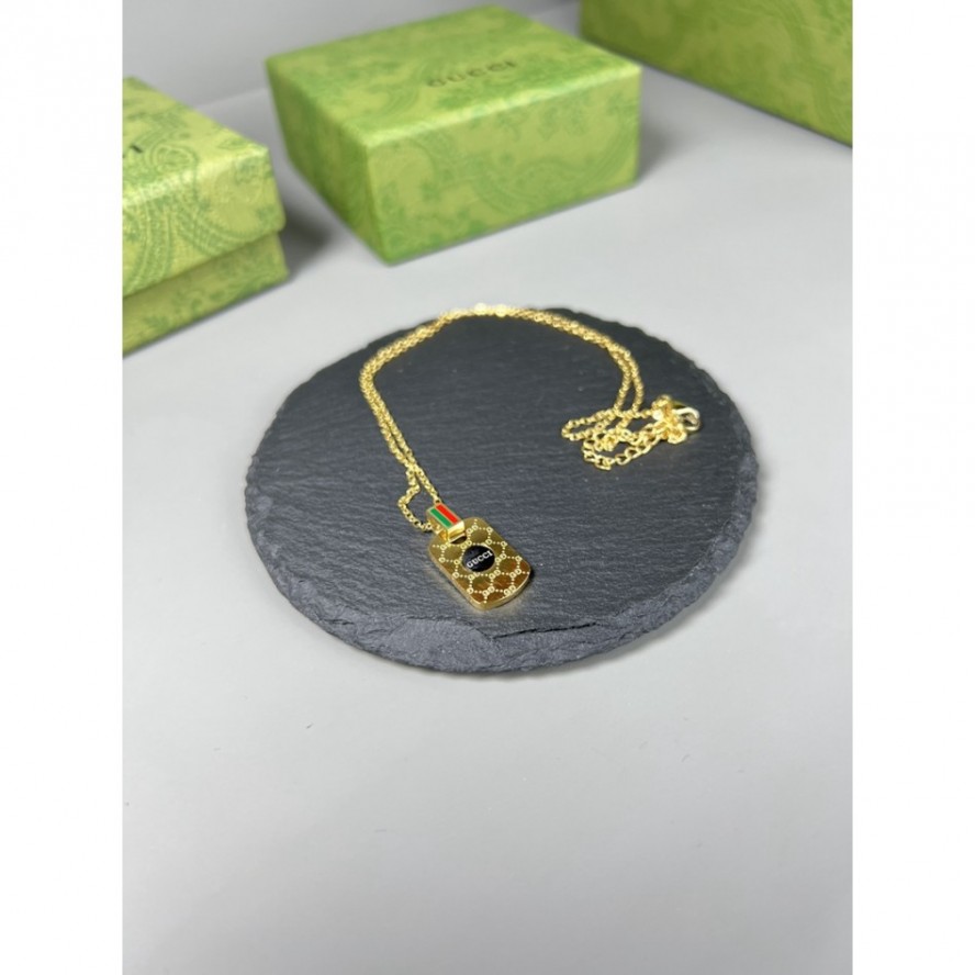 テクスチャードリンクとスムースリンクを交互に配した、コンテンポラリーな雰囲気のシルバーチェーンのネックレス。グッチを象徴するインターロッキングGをエングレービングで表現したペンダントが存在感を放っています。