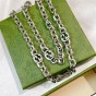 テクスチャードリンクとスムースリンクを交互に配した、コンテンポラリーな雰囲気のシルバーチェーンのネックレス。グッチを象徴するインターロッキングGをエングレービングで表現したペンダントが存在感を放っています。