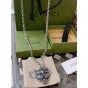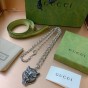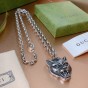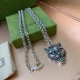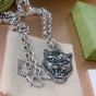 テクスチャードリンクとスムースリンクを交互に配した、コンテンポラリーな雰囲気のシルバーチェーンのネックレス。グッチを象徴するインターロッキングGをエングレービングで表現したペンダントが存在感を放っています。
