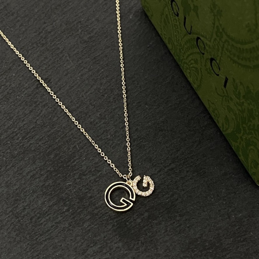 テクスチャードリンクとスムースリンクを交互に配した、コンテンポラリーな雰囲気のシルバーチェーンのネックレス。グッチを象徴するインターロッキングGをエングレービングで表現したペンダントが存在感を放っています。