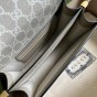 1930年代のアーカイブデザインにヒントを得たGGスプリーム キャンバスは、グッチの最も象徴的な素材のひとつです。ベージュ&エボニーの組み合わせが定番のこのキャンバスを、時代を超越するアイテムと不朽のデザインへのオマージュとして、ベージュ&ホワイトで表現しました。このミニサイズのショルダーバッグは、オートミール レザー トリムとインターロッキングG タグでアクセントを添えています。
