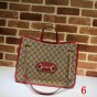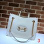 今シーズン、〔グッチ ホースビット 1955〕ラインに登場した、丸みのあるエッジとソフトなシェイプが特徴のトートバッグ。GGスプリーム キャンバスで仕立て、ブラウンレザーのトリムを施しました。ミディアムサイズのフォルムに、ダブルハンドル、現代的なスピリットを加えるチェーン ショルダーストラップ、収納品を整理しやすいインテリアです。〔グッチ ホースビット 1955〕は、60年以上前に誕生したオリジナルのバッグを彩っていたディテールに現代的なスピリットを加え、ホースビットを際立たせたコレクションです。ダブルリングとバーから成るこのモチーフはブランドのルーツを物語るもので、乗馬の世界から取り入れたグッチのシンボルの中でも最も代表的なエレメントのひとつとなっています。