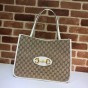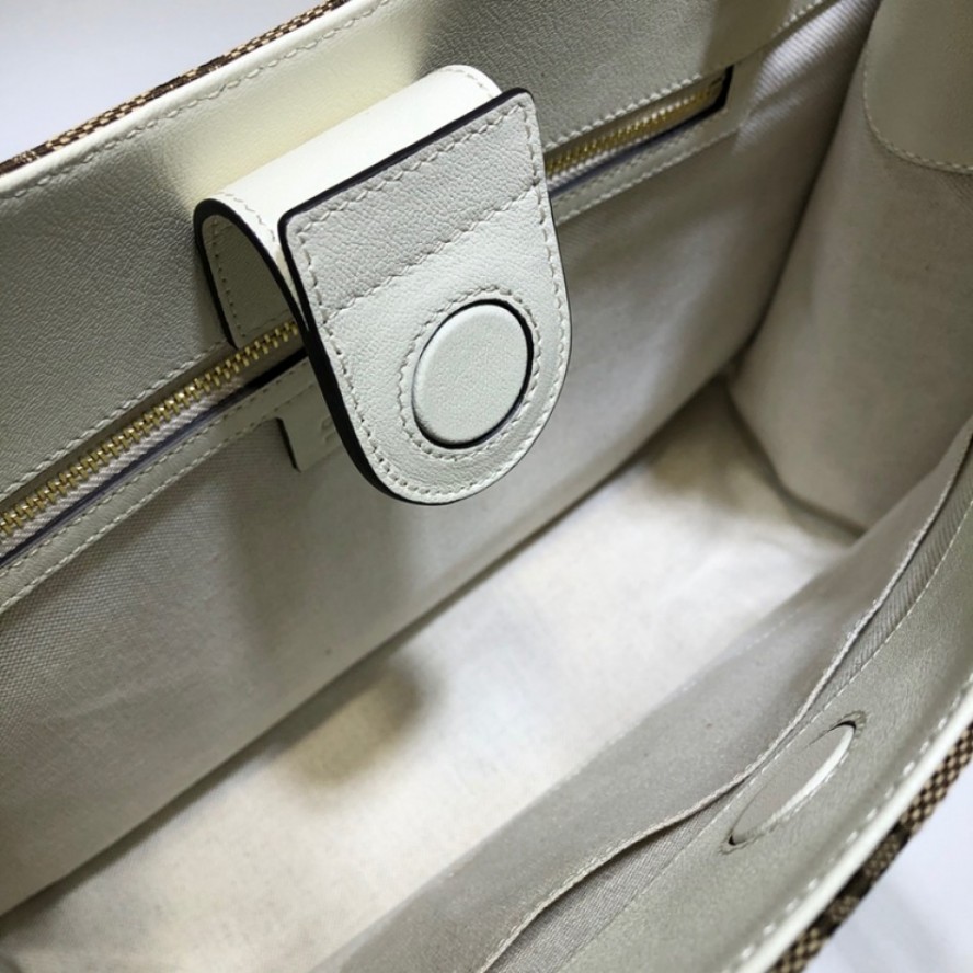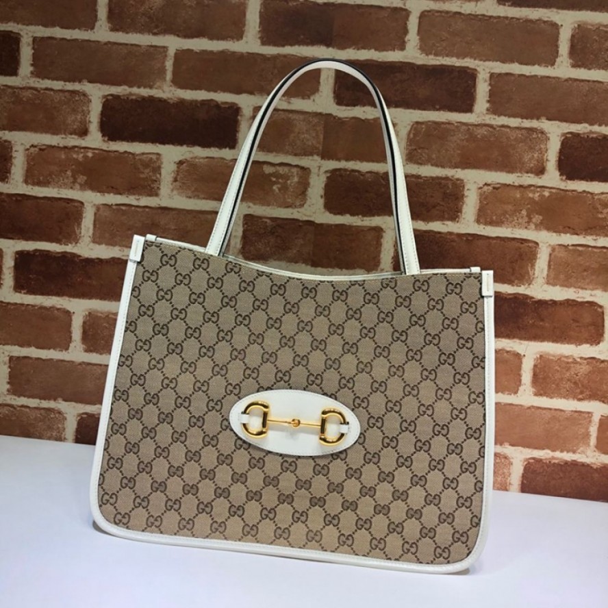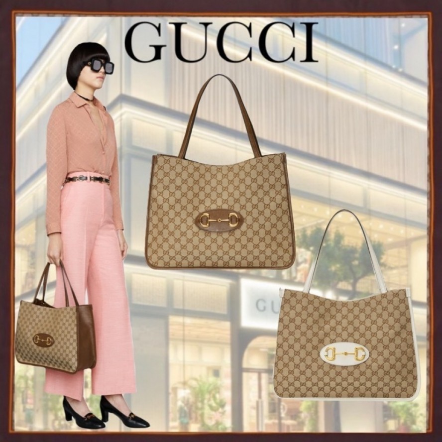 丸みのあるエッジとソフトなシェイプが特徴の〔グッチ ホースビット 1955〕トートバッグ。GGスプリーム キャンバスで仕立て、ホワイトレザーのトリムを施しました。ダブルハンドル、収納品を整理しやすいインテリアです。〔グッチ ホースビット 1955〕は、60年以上前に誕生したオリジナルのバッグを彩っていたディテールに現代的なスピリットを加え、ホースビットを際立たせたコレクションです。ダブルリングとバーから成るこのモチーフはブランドのルーツを物語るもので、乗馬の世界から取り入れたグッチのシンボルの中でも最も代表的なエレメントのひとつとなっています。