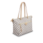 クラシカルなフォルムが魅力のシックな「イエナ MM」。フレッシュなダミエ・アズール キャンバスに、ヌメ革のトリミングとゴールドカラーの金具をあしらいました。アクティブな女性にぴったりの大容量のバッグは、軽量で持ちやすいのも魅力。ファスナー付きのフロントポケットと内側のコンパートメントで、身の回りの物をしっかりと収納できます。