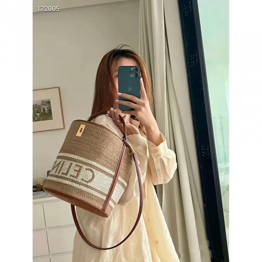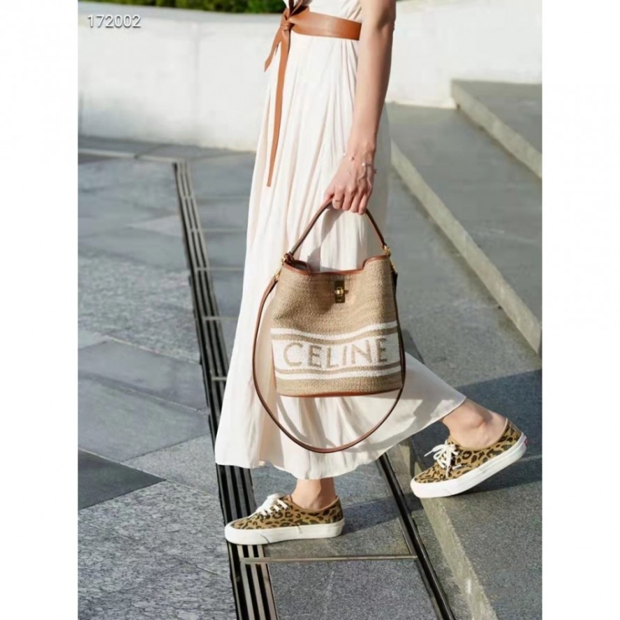 Celine・ラージセリーヌプリント生地とカウレザースクエアハンドバッグ