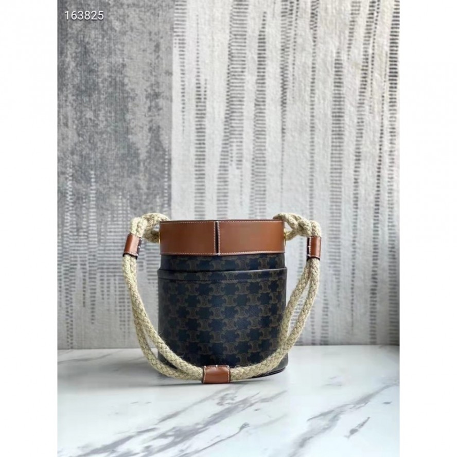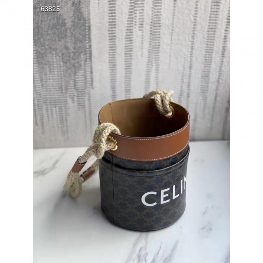Celine・バケットプリントデニムとカウレザーのバケットバッグ