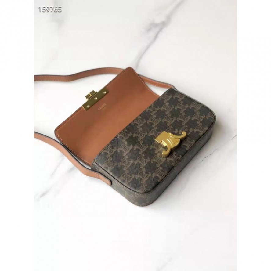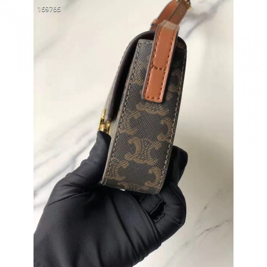 Celine・TRIOMPHEロゴプリントカーフレザーショルダーバッグ