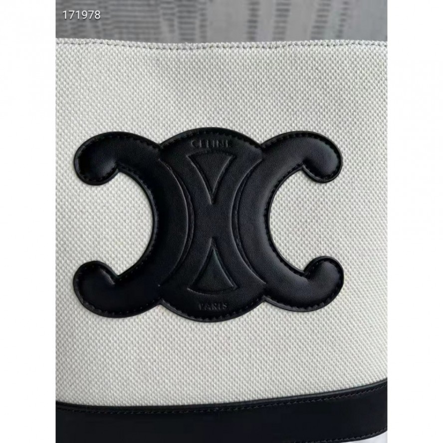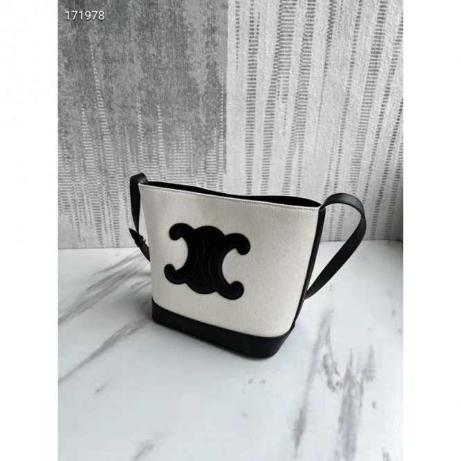 Celine・CUIRTRIOMPHEスモールファブリックとカーフレザーのバケットバッグ