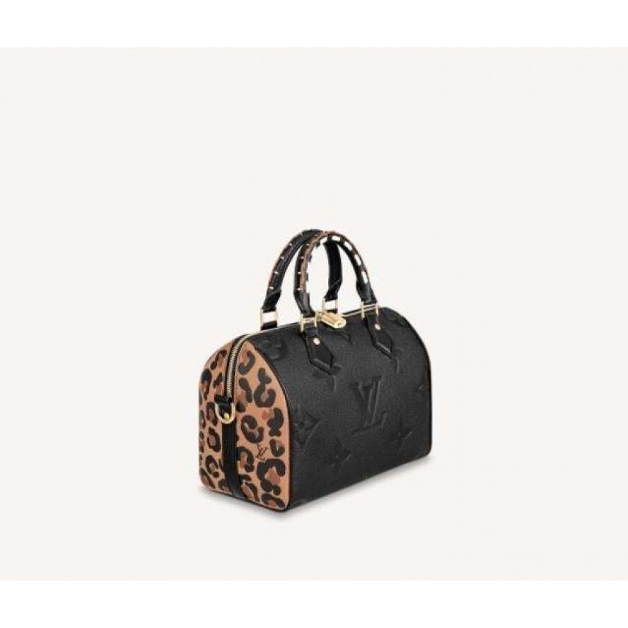 2021秋の「ワイルド?アット?ハート」カプセル?コレクションに相応しく、斬新な印象にアップデートされた「スピーディ?バンドリエール 25」。エンボス加工が特徴のモノグラム?アンプラント レザーで仕立てました。モノグラム?パターンはオーバーサイズにして、サイドには大胆なアニマル?プリントをあしらいました。編み上げレザー製のトロンハンドルがカプセル?コレクションならではの個性を放ちます。クロスボディバッグとしてもご使用いただける取外し可能なストラップ付き。