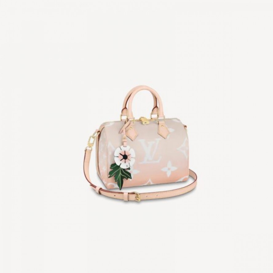 モノグラム・ジャイアント キャンバスをパステルカラーのグラデーションに染め上げた「スピーディ・バンドリエール 25」。都会の日常生活にマッチするエレガントなアイテムです。移動手段の加速化に伴い、1930年に誕生したバッグ「エクスプレス」。そのアップデートバージョンである「スピーディ」を、レザーのフラワーチャームで飾りました。