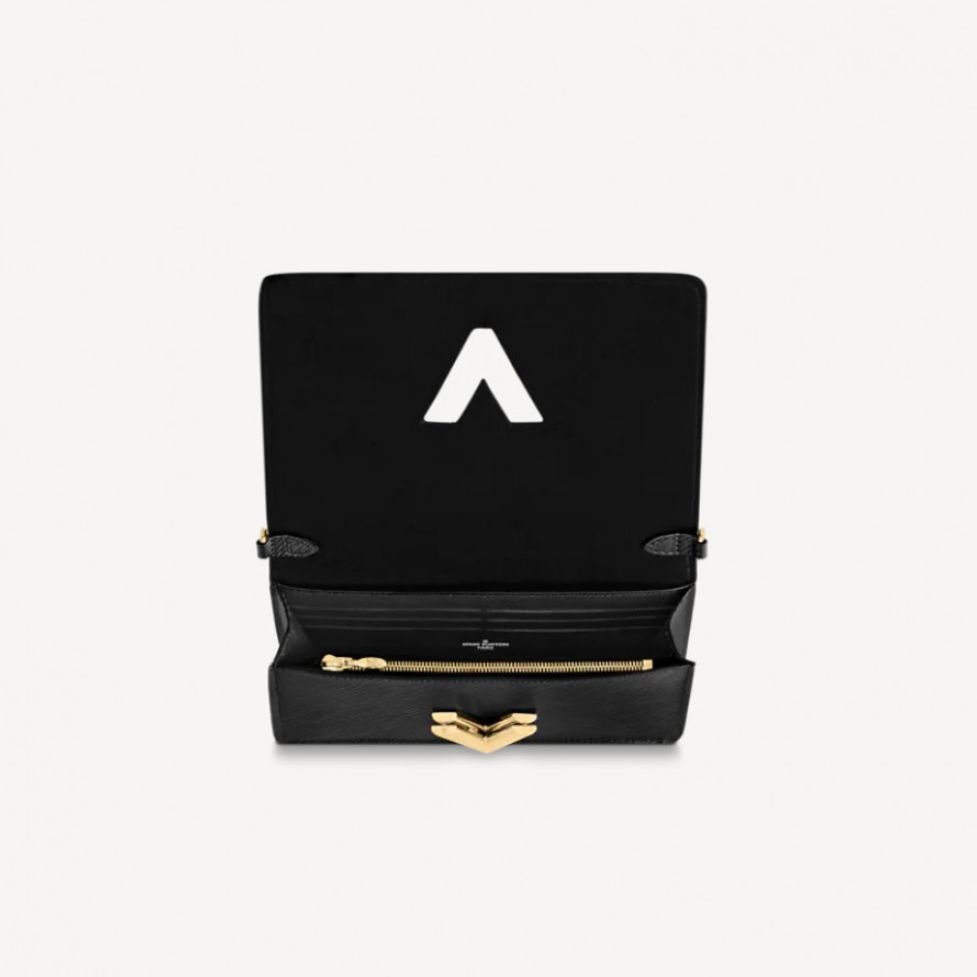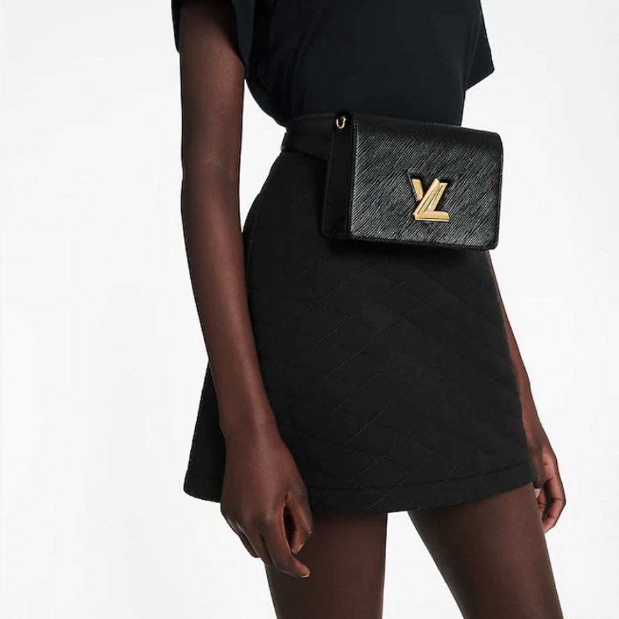 ブラックのエピ・レザーにゴールドカラーのメタルパーツをあしらった「ポルトフォイユ・ツイスト ベルト」。クラッチバッグやショルダーバッグとしても、背面のループでベルトに取付けてもお使いいただけるモダンなデザインです。スマートフォンなどの必需品を収納でき、LV ツイストロックで中身を安全に持ち運べます。