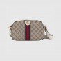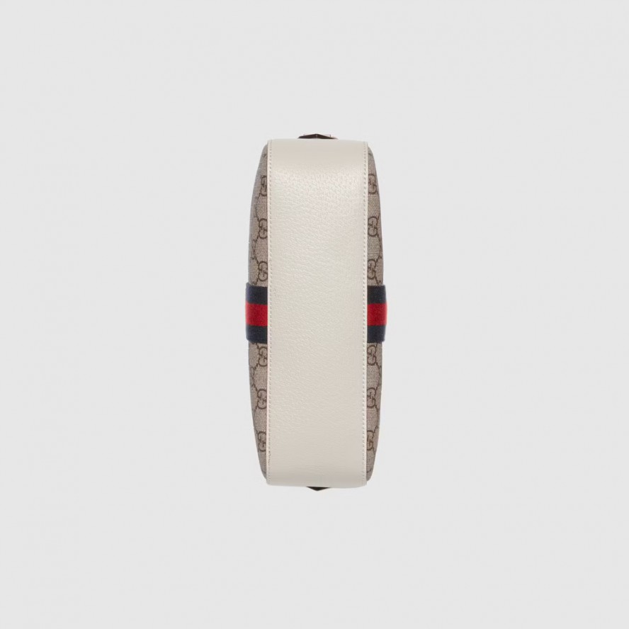 Aria コレクションでは、ヴィンテージを思わせるディテールにグッチを象徴するモチーフを組み合わせた新たなアイテムが加わり、〔オフィディア〕の世界がさらなる広がりを見せています。このカメラケースはベージュ&エボニーのGGスプリーム キャンバスで仕立て、ホワイトのレザー トリムを施しました。ブルー/レッド/ブルーのウェブ ストライプ ディテールを中央に配しています。ショルダーストラップをつけてクロスボディバッグとしてもご使用いただけます。