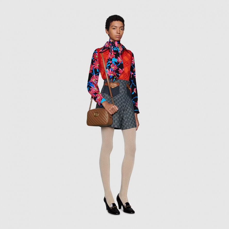 Epilogueコレクションでは、ファッションの既成ルールを捨て去ろうというメッセージを込め、過去5年間のアレッサンドロ・ミケーレによるコレクションを象徴するスタイルとモチーフを取り入れながら、ワンシーズンで消費されることのないタイムレスなアイテムを展開しています。この〔GGマーモント〕もそのひとつ。ダイアゴナル キルティングを施したブラウン レザーで独自のスタイルに仕立てたこのスモール ショルダーバッグは、チェーンストラップを備えたややかっちりとしたシェイプです。