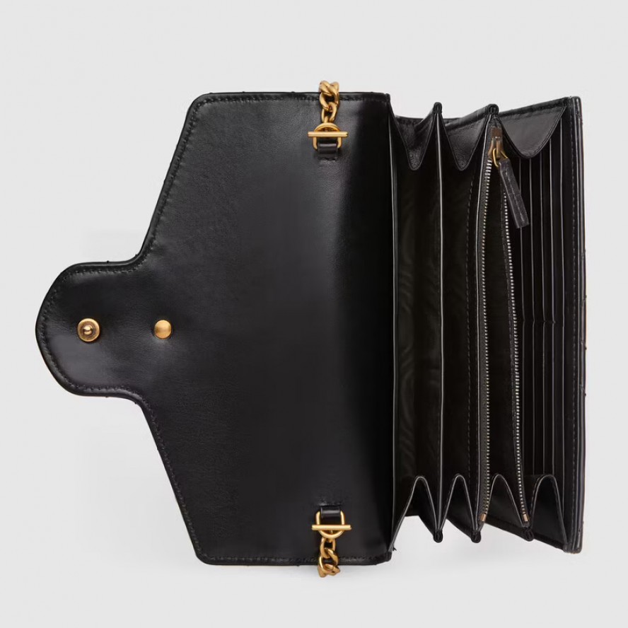 シェブロン キルティング レザーの〔GGマーモント〕 ミニチェーンバッグ。バックのGGが印象的です。