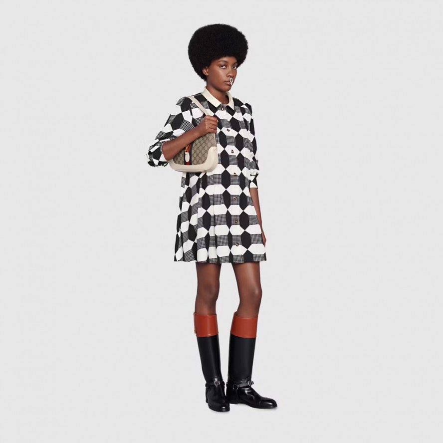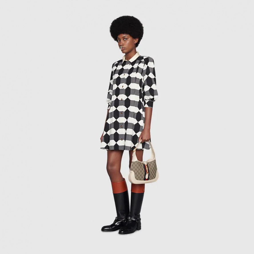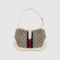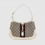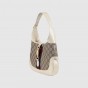 歴史あるデザインのひとつである〔ジャッキー 1961〕ショルダーバッグを、デニムで再解釈しました。グッチはファッションの既成ルールを捨て去ろうというメッセージを込め、ワンシーズンで消費されることのないタイムレスなアイテムを追求しています。このテーマを反映して、象徴的なウェブ ストライプとGGパターンでバッグを飾りました。グッチの伝統との深いつながりを感じさせる一品です。