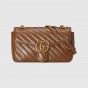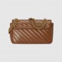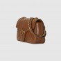 Epilogueコレクションでは、ファッションの既成ルールを捨て去ろうというメッセージを込め、過去5年間のアレッサンドロ・ミケーレによるコレクションを象徴するスタイルとモチーフを取り入れながら、ワンシーズンで消費されることのないタイムレスなアイテムを展開しています。この〔GGマーモント〕もそのひとつ。ダイアゴナル キルティングを施したブラウン レザーで独自のスタイルに仕立てたスモール ショルダーバッグに、グッチを象徴するダブルG ハードウェアを配しました。