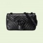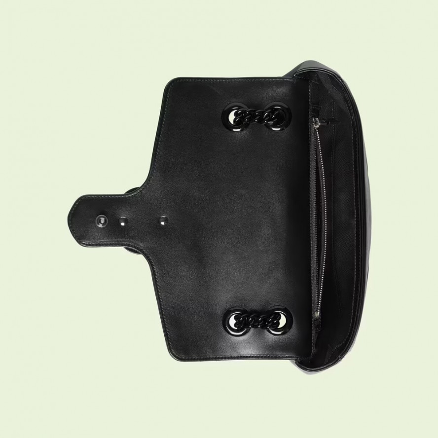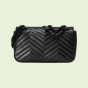 ソフトなストラクチャードシェイプにダブルG ハードウェア付き オーバーサイズ フラップ クロージャーを組み合わせた、スモールサイズの〔GGマーモント〕チェーンショルダーバッグ。スライド式チェーンストラップにより、ショルダーバッグからトップハンドルバッグまで様々なスタイルでご使用いただけます。シェブロン キルティングレザーで仕立てたこのアイテムを、Gucci Love Paradeではモノクロームのハードウェアで飾りました。