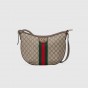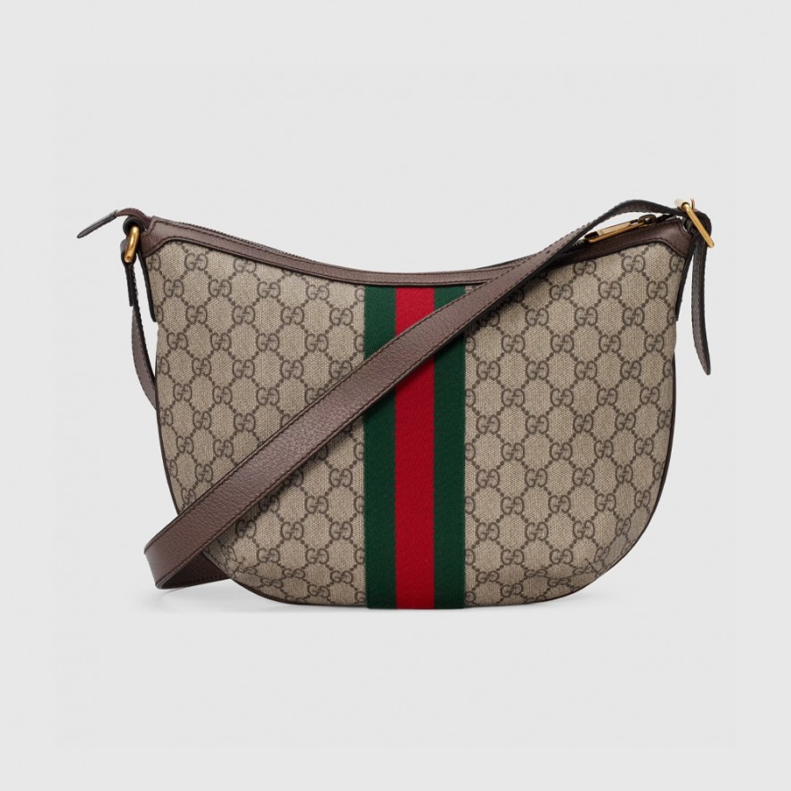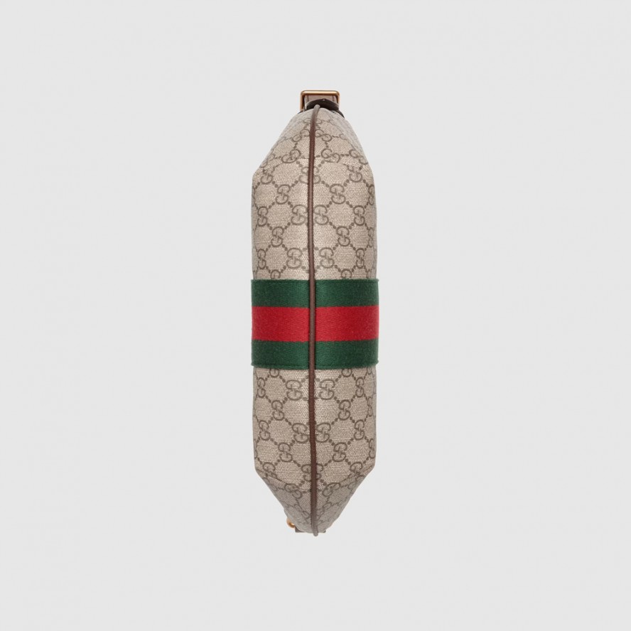 グッチの代表的なモチーフ、ダブルGとウェブ ストライプをクラシカルに組み合わせた〔オフィディア〕ラインに、新たなフォルムやシルエットを取り入れた新作が登場。ハーフムーンシェイプは、1950年代後半からグッチの人気モデルとなっているホーボーバッグの系譜を受け継ぐ特徴的なスタイルです。GGスプリーム キャンバスで仕立て、テクスチャードレザーのトリムを施し、ダブルGハードウェアをあしらいました。 |