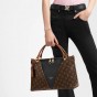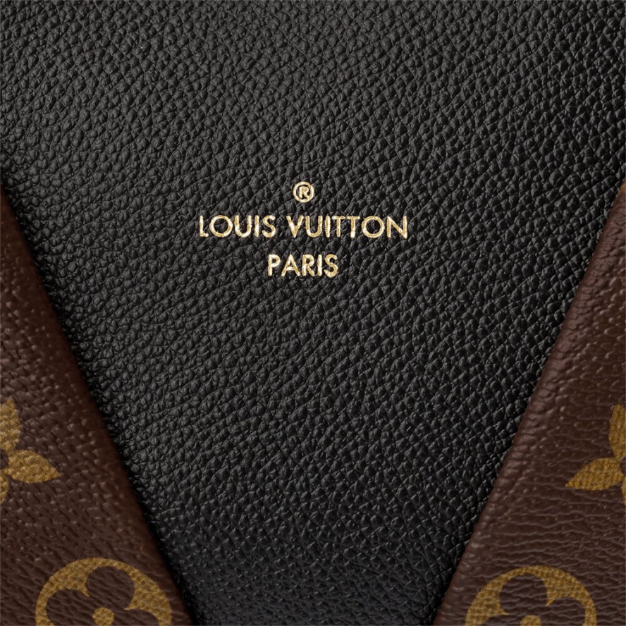 【完売間近】モノグラム・キャンバスにグレインレザーを組み合わせた2018秋冬コレクションの「Vトート MM」。ファスナー式の隠しポケットを備え、Vuittonのイニシャルを想起させるカウハイドレザーの「V」シェイプをフロント部分にあしらいました。ゴールドカラーの金具とLVの刻印を施したハンドルマウントリングがこのエレガントで機能的なバッグに輝きを添えます。 |