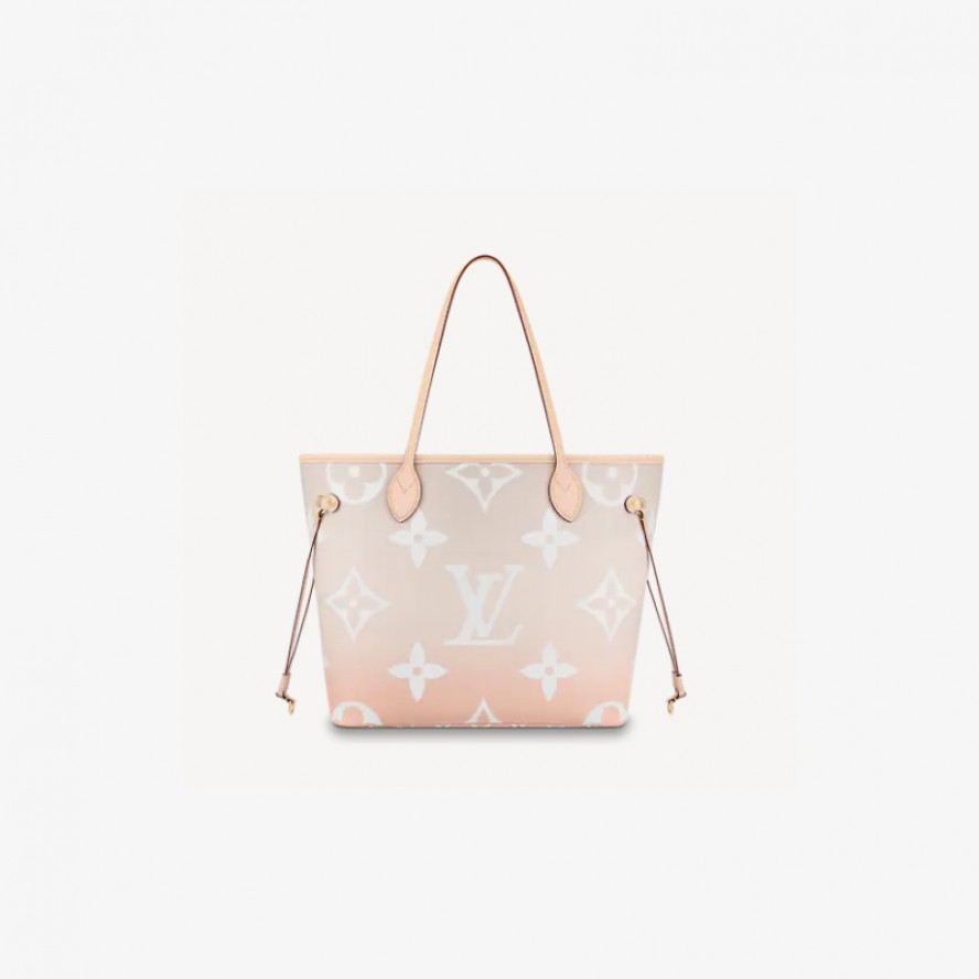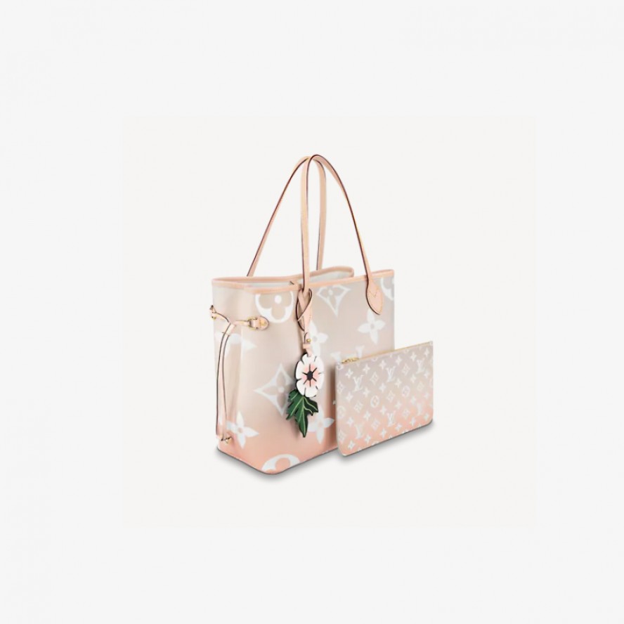 モノグラム・ジャイアント キャンバスをパステルカラーのグラデーションに染め上げ、レザーのフラワーチャームで飾った「ネヴァーフル MM」。サイドレースを締めれば洗練されたシルエットを、緩めればカジュアルな雰囲気を演出できるのが魅力です。内側に添えたポーチは取外してクラッチバッグとしてもご使用いただけます。肩や腕にも掛けやすいスリムなハンドル付き。 |