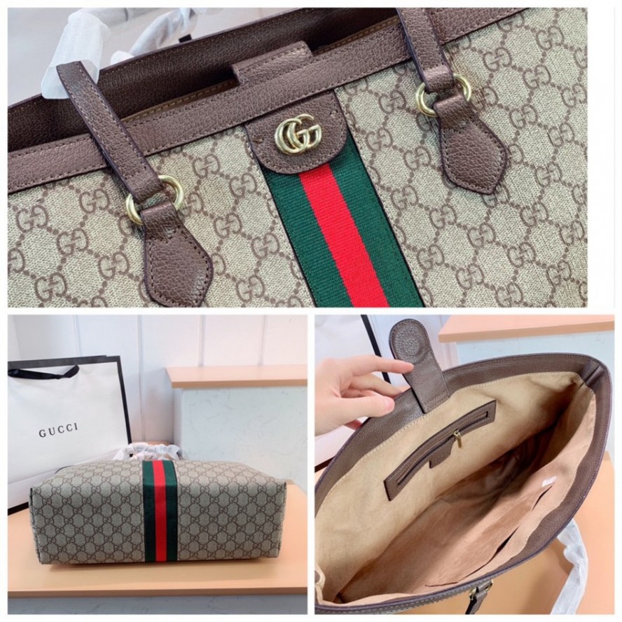 ・フロントとバックにロゴハードウェアとシグネチャーレッドとグリーンのストライプアップリケ