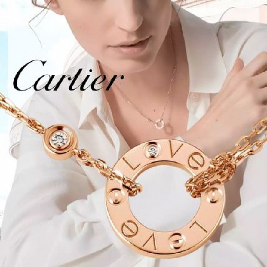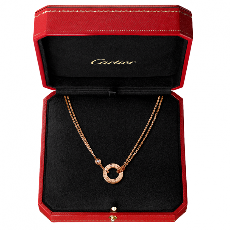 Love ネックレス、18Kピンクゴールド、ブリリアントカット ダイヤモンド2個、内径:7.8mm、チェーンの長さ:392mm
