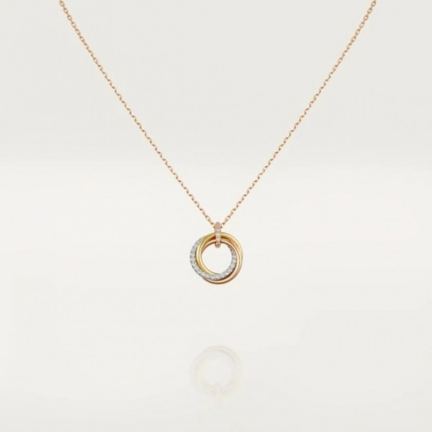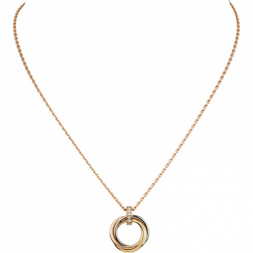 トリニティ ネックレス、18Kホワイトゴールド、18Kイエローゴールド、18Kピンクゴールド、ダイヤモンド33個、ピンクゴールド チェーン