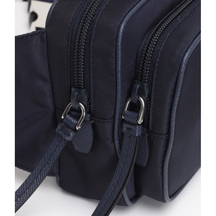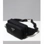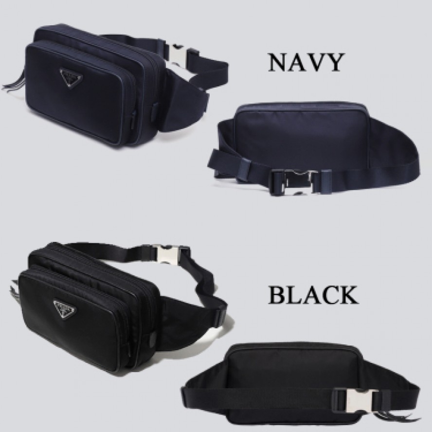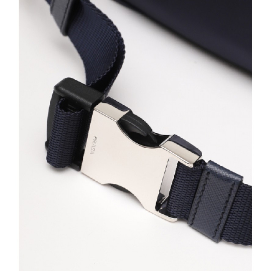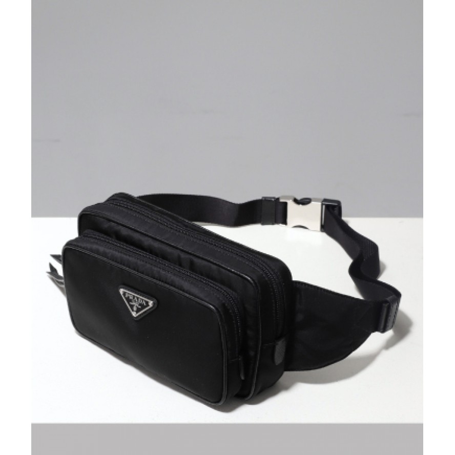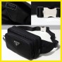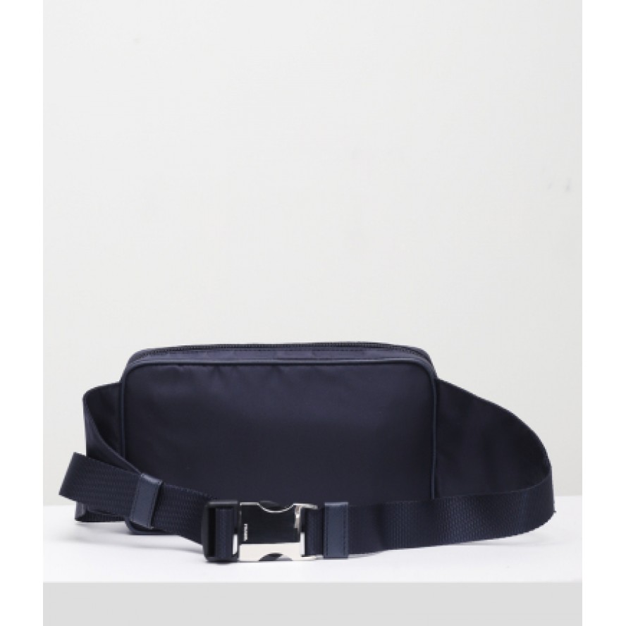 ・汎用性の高いファブリックとレザーのベルトバッグ。トーンオントーンのレザーのファスナープルとフロントのロゴが明るい印象を与えるスリークなデザイン。ファブリックベルトは調節可能です。