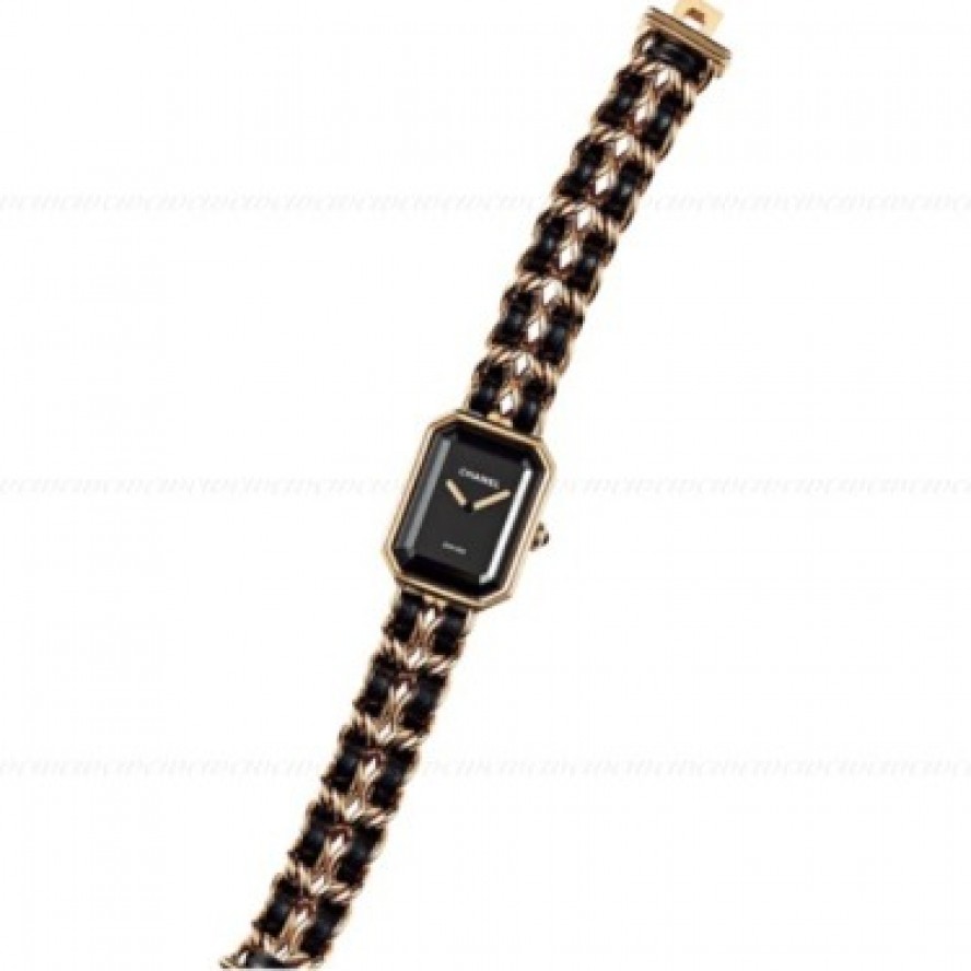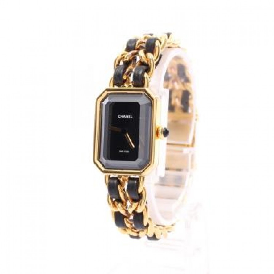 [CHANEL]プルミエール M レディース 腕時計 クオーツ GP レザー ゴールド ブラック ブラック文字盤 ジャンク品