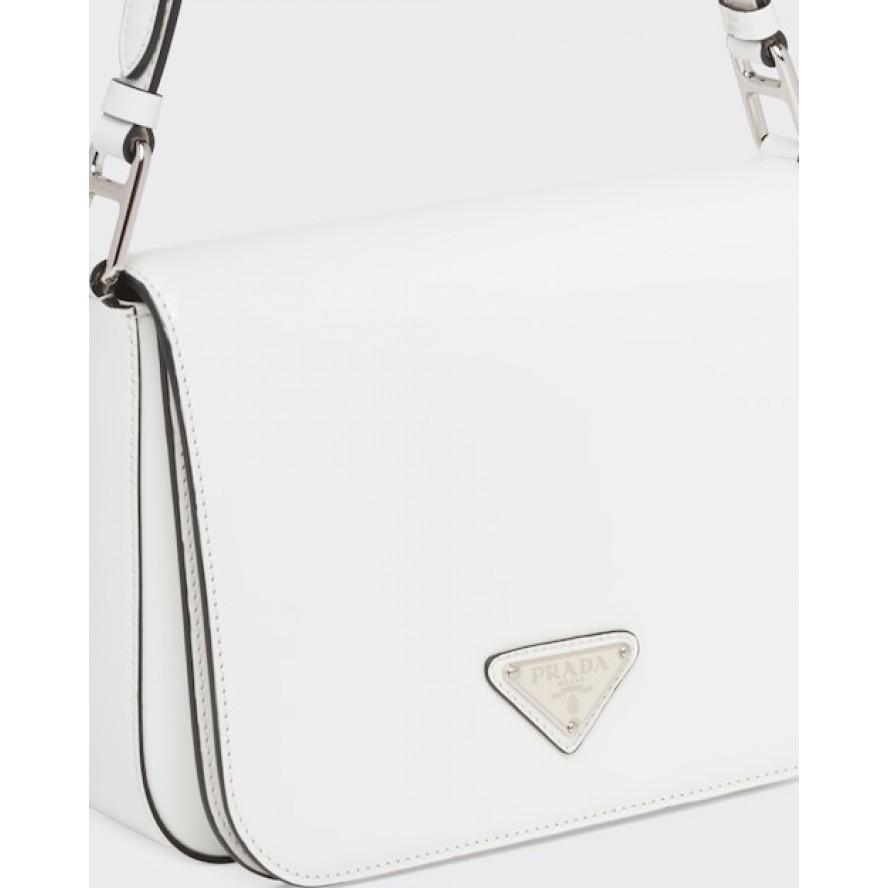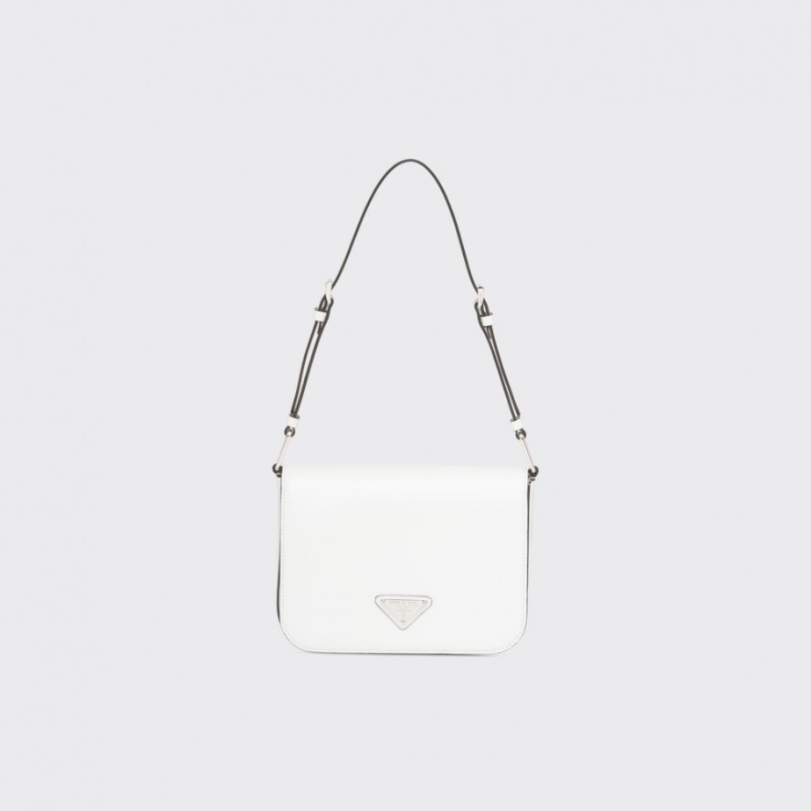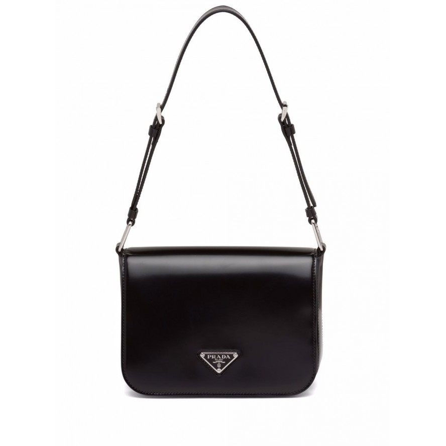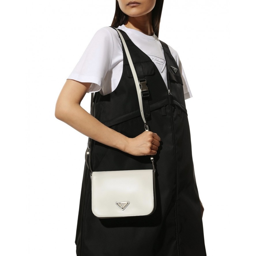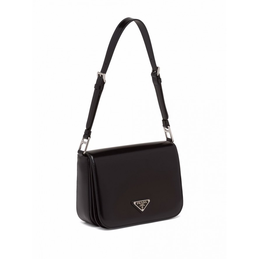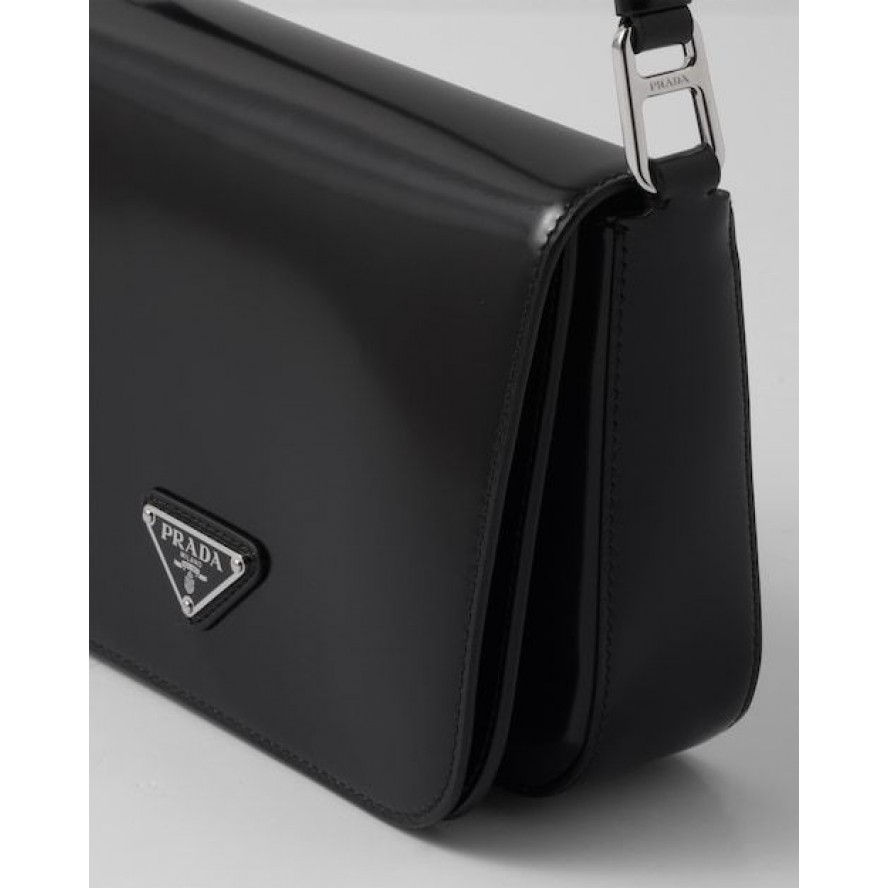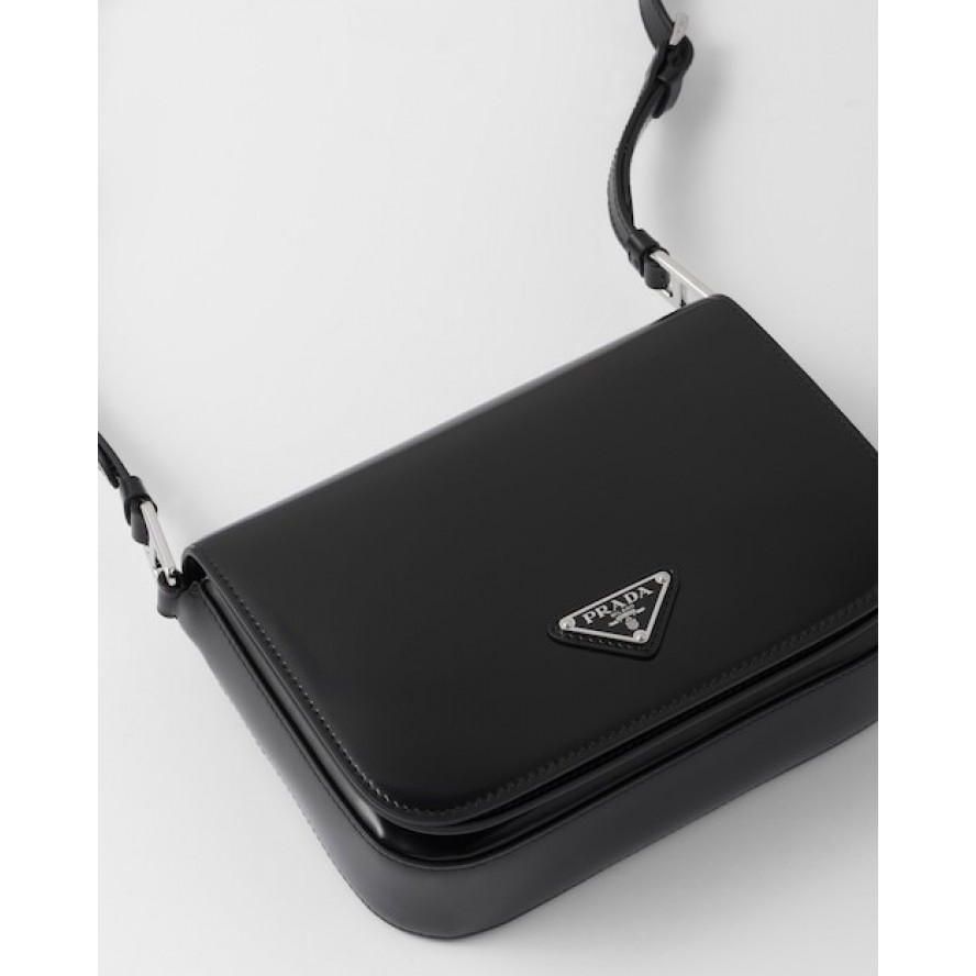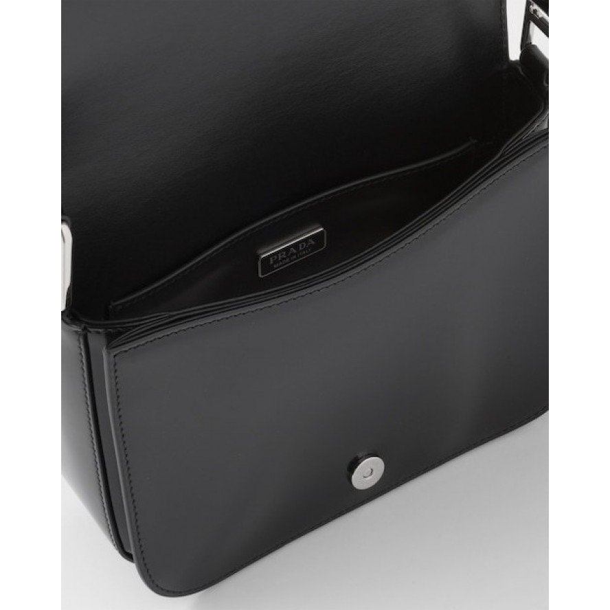 洗練されたモダンなライン、機能性、上質な素材を組み合わせ、優雅さと実用性を融合させたハイブリッドなバッグ。プラダを象徴する素材、ブラッシュドレザー(牛革)を使用した曲線的なデザイン。フラップ開閉式と、クロスボディバッグとしてもショルダーバッグとしても様々なシーンでお使いいただける調整可能なレザーショルダーストラップが特徴です。フラップには、創業者のマリオ・プラダが考案したロゴを現代的なデザインで再解釈したエナメルメタルのトライアングルロゴがあしらわれています。