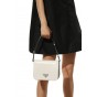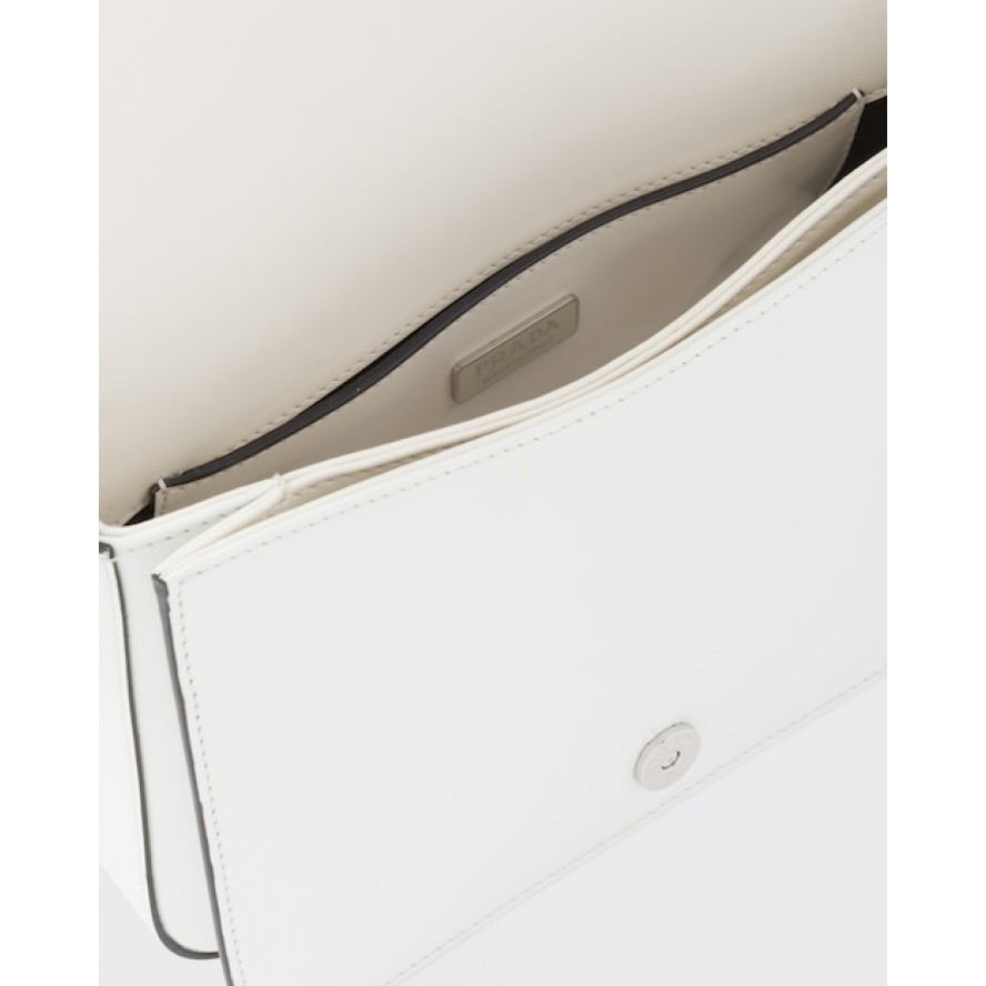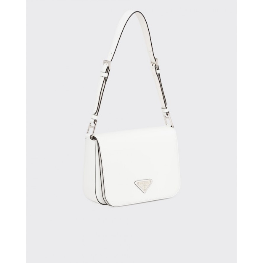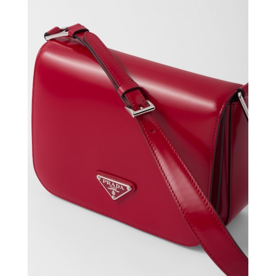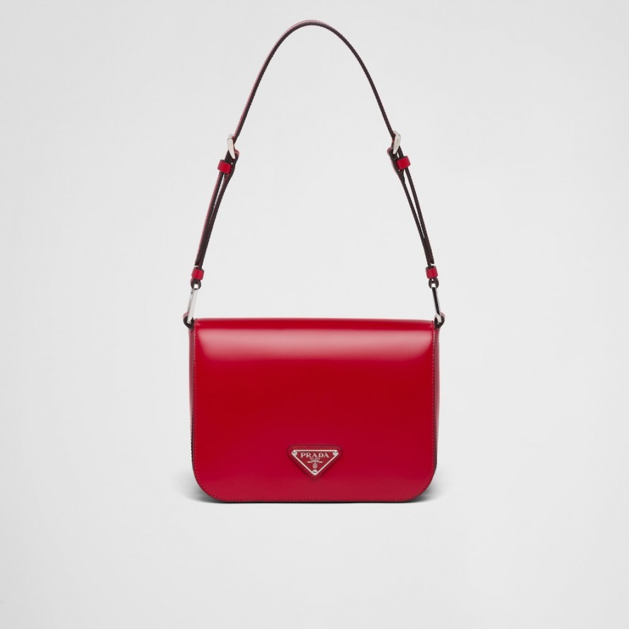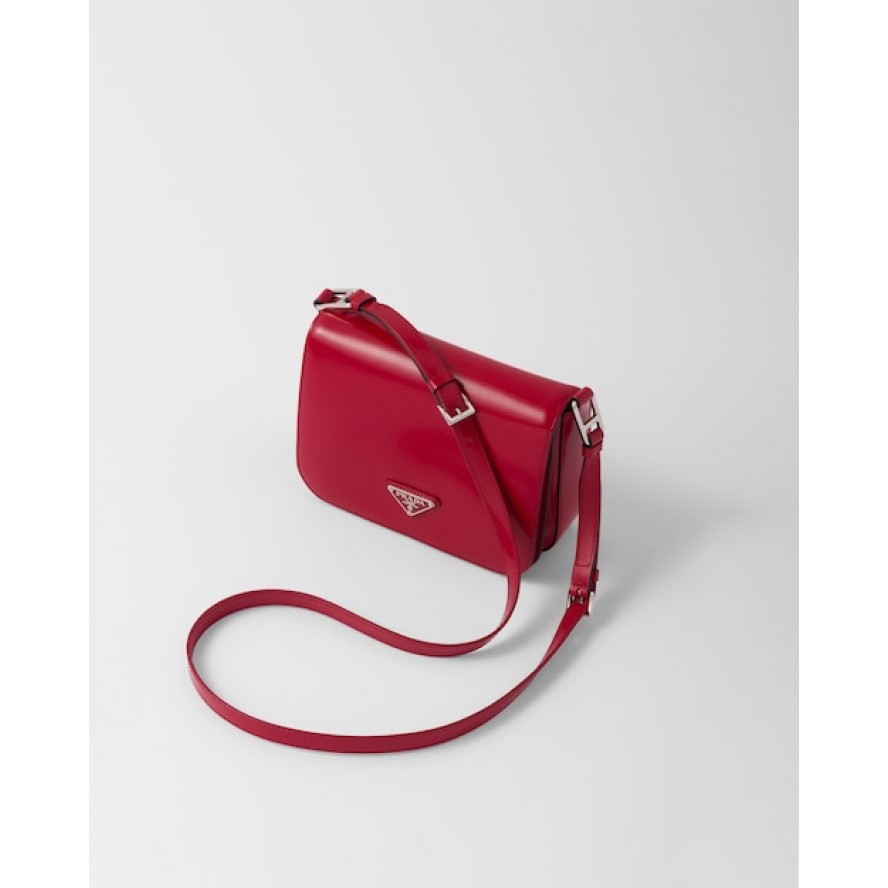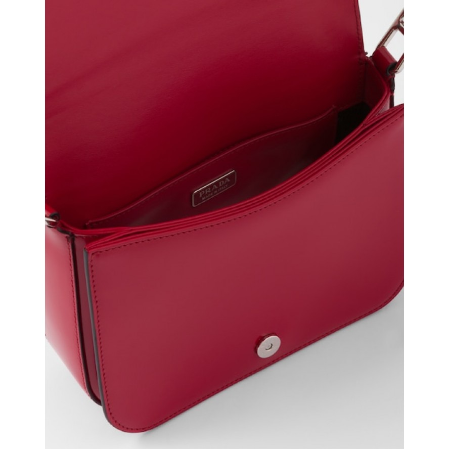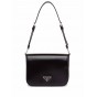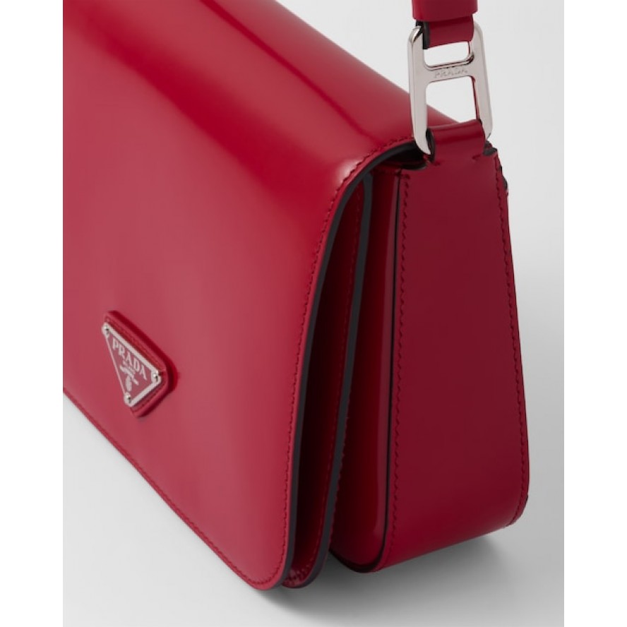 洗練されたモダンなライン、機能性、上質な素材を組み合わせ、優雅さと実用性を融合させたハイブリッドなバッグ。プラダを象徴する素材、ブラッシュドレザー(牛革)を使用した曲線的なデザイン。フラップ開閉式と、クロスボディバッグとしてもショルダーバッグとしても様々なシーンでお使いいただける調整可能なレザーショルダーストラップが特徴です。フラップには、創業者のマリオ・プラダが考案したロゴを現代的なデザインで再解釈したエナメルメタルのトライアングルロゴがあしらわれています。