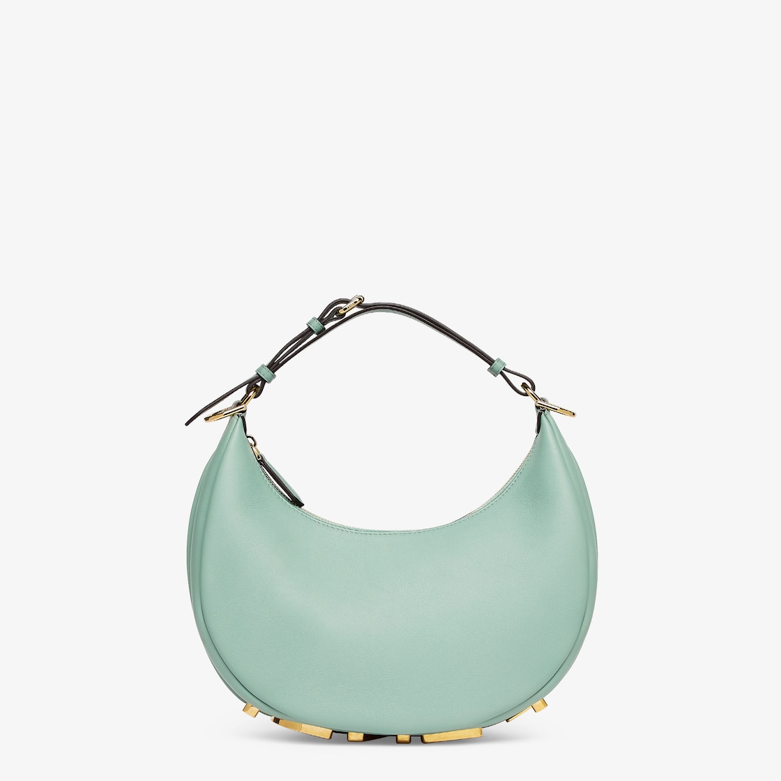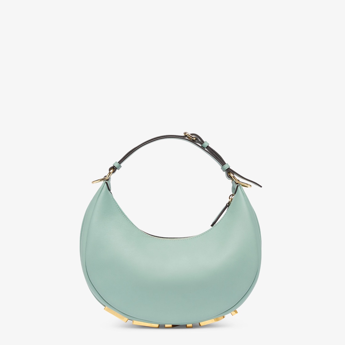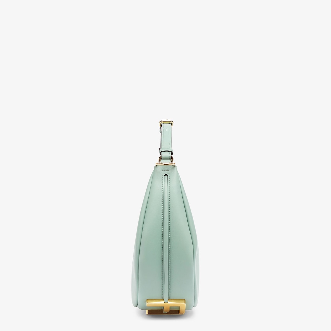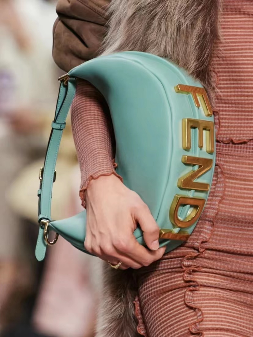 ソフトなレザーを使用したホーボーバッグ。小脇に抱えるとヴィンテージゴールドメタルのFENDIレタリングが見えるデザイン。