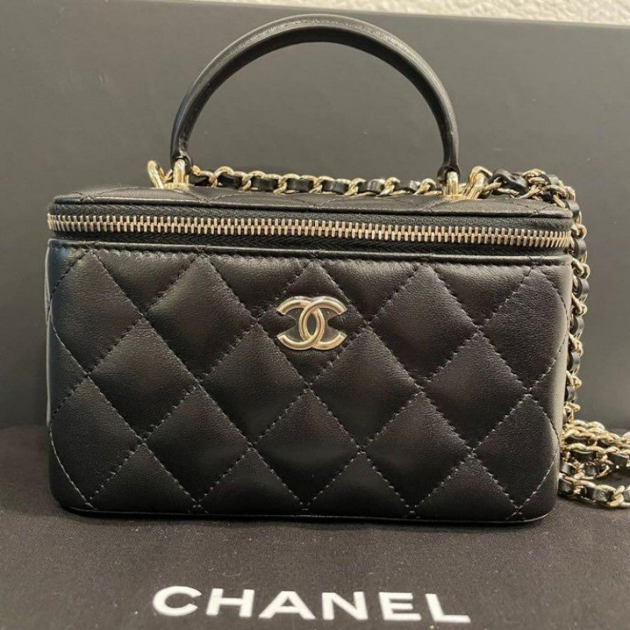 シャネルで人気のバニティバッグ。こちらはスマホも入れて頂ける大きさで大変人気のバッグになります。