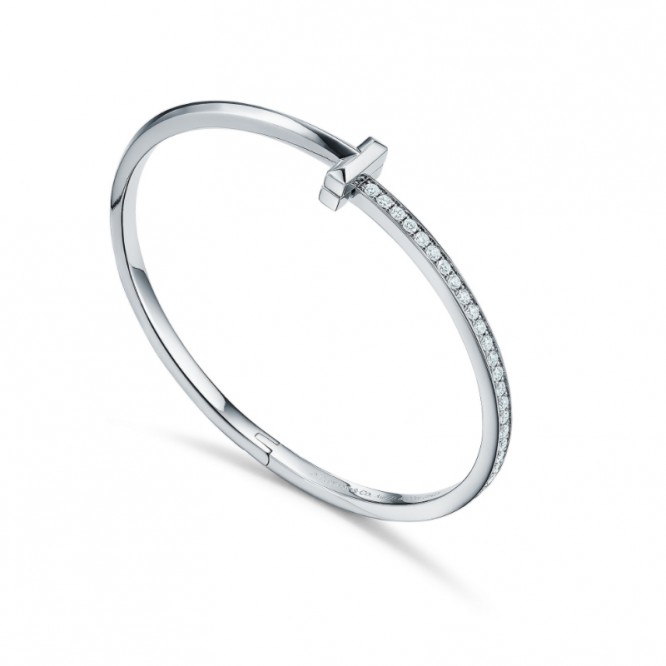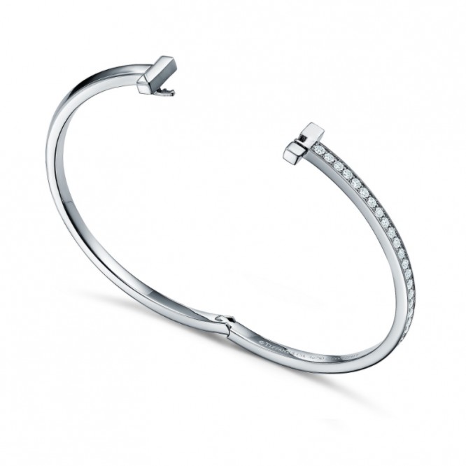 ★1129新品★Tiffany ティファニー T T ワン ナロー ダイヤモンド ヒンジ バングル 18K ホワイトゴールド 68315840