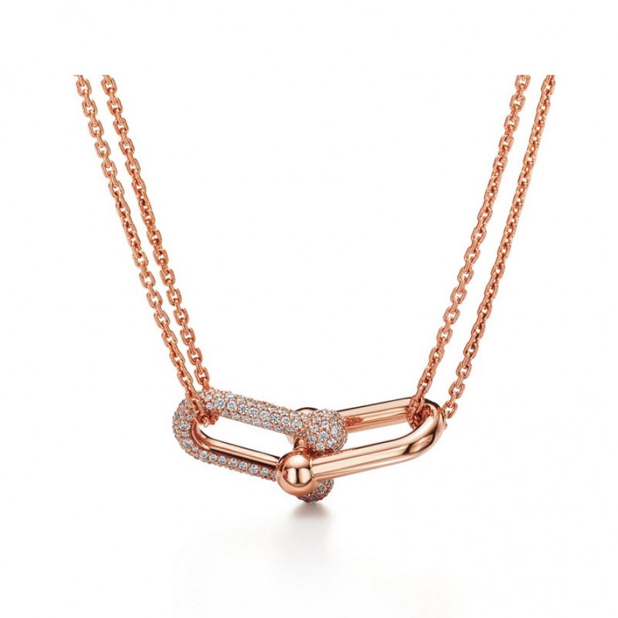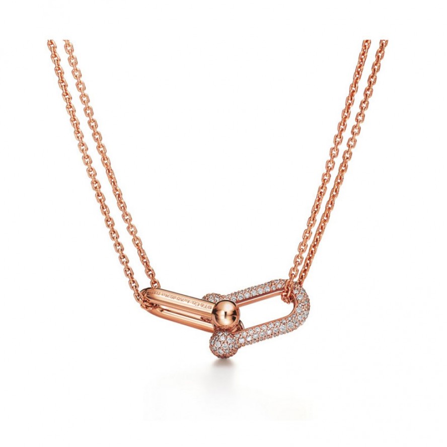 ★新品★Tiffany ティファニー ハードウェア ダブルリンク ペンダント パヴェ ダイヤモンド 18K ローズゴールド 68692512