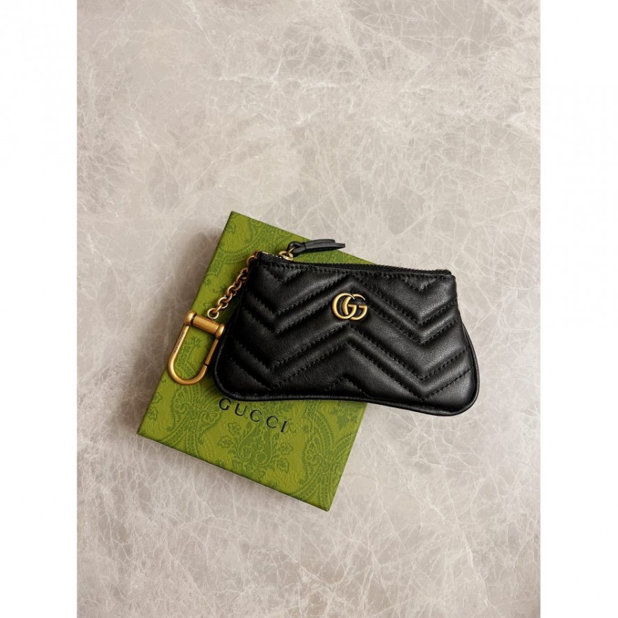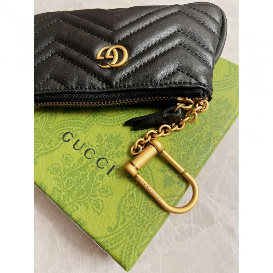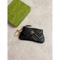グッチのAria コレクションでは、アーカイブを新たな表現で解釈したブランドの代表的なシンボルが多数登場しています。〔GGマーモント〕ラインに、ブラックのキルティングレザーで仕立てたジップ クロージャーのキーケースが加わりました。〔GGマーモント〕ラインを象徴するダブルG ハードウェアがスリムなアクセサリーに彩りを添えています。