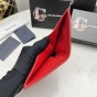 コンパクトなフォルムが美しい、上質な「サフィアーノ」レザー(牛革)の財布。クレジットカードホルダー、札入れと小銭入れが備わっています。メタルのトライアングルロゴ付。