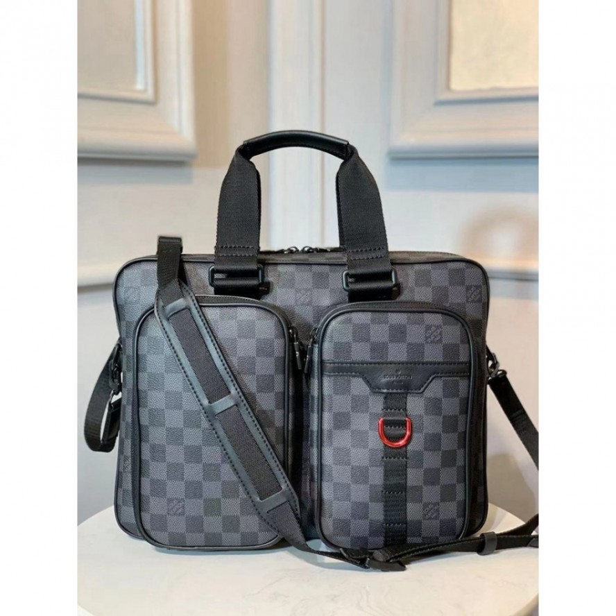 機能性抜群の「ユーティリティ・ビジネス」。ダミエ・グラフィット キャンバスにブラックとレッドのメタルパーツを合わせ、内側にはレッドのテキスタイルでライニングを施しました。幅広のハンドルと、ショルダーパッドを添えた調節可能なレザーストラップが、快適な使い心地を実現します。ファスナー開閉式のメインコンパートメントに2つのサイドポケットが備わり、ノートパソコンやiPad、書類などを整理して収納できます。