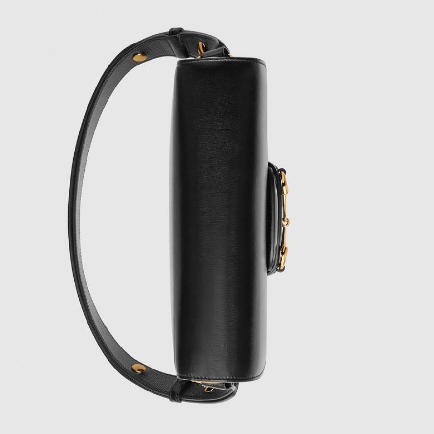 アーカイブデザインを再解釈した〔グッチ ホースビット 1955〕バッグが最新コレクションに登場。60年以上前の誕生時と同じラインやフォルムを取り入れながら、オリジナルのディテールに現代的なスピリットを加え、ホースビットを際立たせています。ダブルリングとバーで構成されたこのモチーフはブランドのルーツを物語るもので、乗馬の世界から取り入れたグッチのシンボルの中でも最も代表的なエレメントのひとつとなっています。このショルダーバッグでは小さなフラップにホースビットをあしらい、ブラックのテクスチャードレザーと印象的に組み合わせました。ショルダーストラップは長さを調節できるため、ショルダーバッグとクロスボディバッグのツーウェイでお使いいただけます。