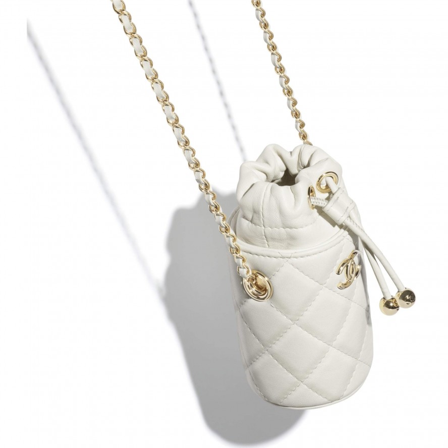 【CHANEL】ミニ バケット バッグ ラムスキン ホワイト