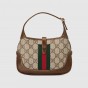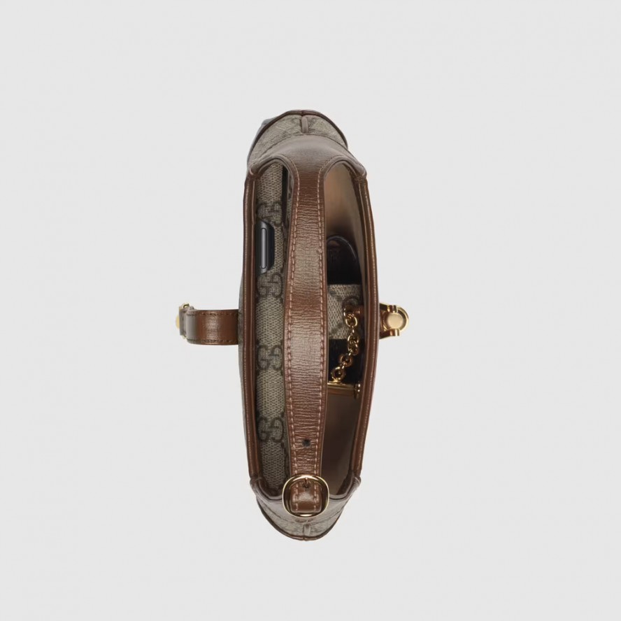 最新コレクションに、グッチの歴史を物語る〔ジャッキー 1961〕バッグを再解釈したミニバッグが登場。この新作ミニバッグは、〔ジャッキー 1961〕の独特のシェイプをGGスプリーム キャンバスで仕立て、取り外し可能なショルダーストラップを付けました。バックル クロージャーで取り付けられるこのストラップによって、トップハンドルバッグからショルダーバッグ、クロスボディバッグまでさまざまなスタイルでお使いいただくことができ、アーカイブデザインにコンテンポラリーな雰囲気を加えます。