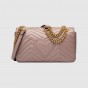 ソフトなストラクチャードシェイプにダブルG ハードウェア付き オーバーサイズ フラップ クロージャーを組み合わせた、スモールサイズの〔GGマーモント〕チェーンショルダーバッグ。スライド式チェーンストラップにより、ショルダーバッグからトップハンドルバッグまで様々なスタイルでご使用いただけます。シェブロン デザインのキルティング レザーを使用し、バックにはハートがあしらわれています。