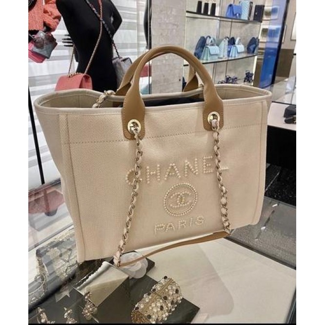 【世界中で大人気】CHANEL 20SS ドーヴィル 真珠 トート シャネル ショッピングバッグ レディース バッグ ライトゴールド A66941B02914N6202