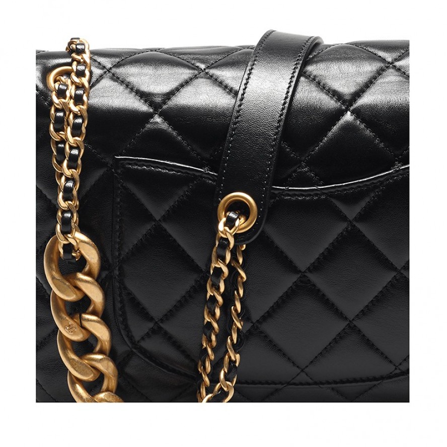 ブラックラムスキンとゴールドチェーンがハードでエレガントな印象です。 |